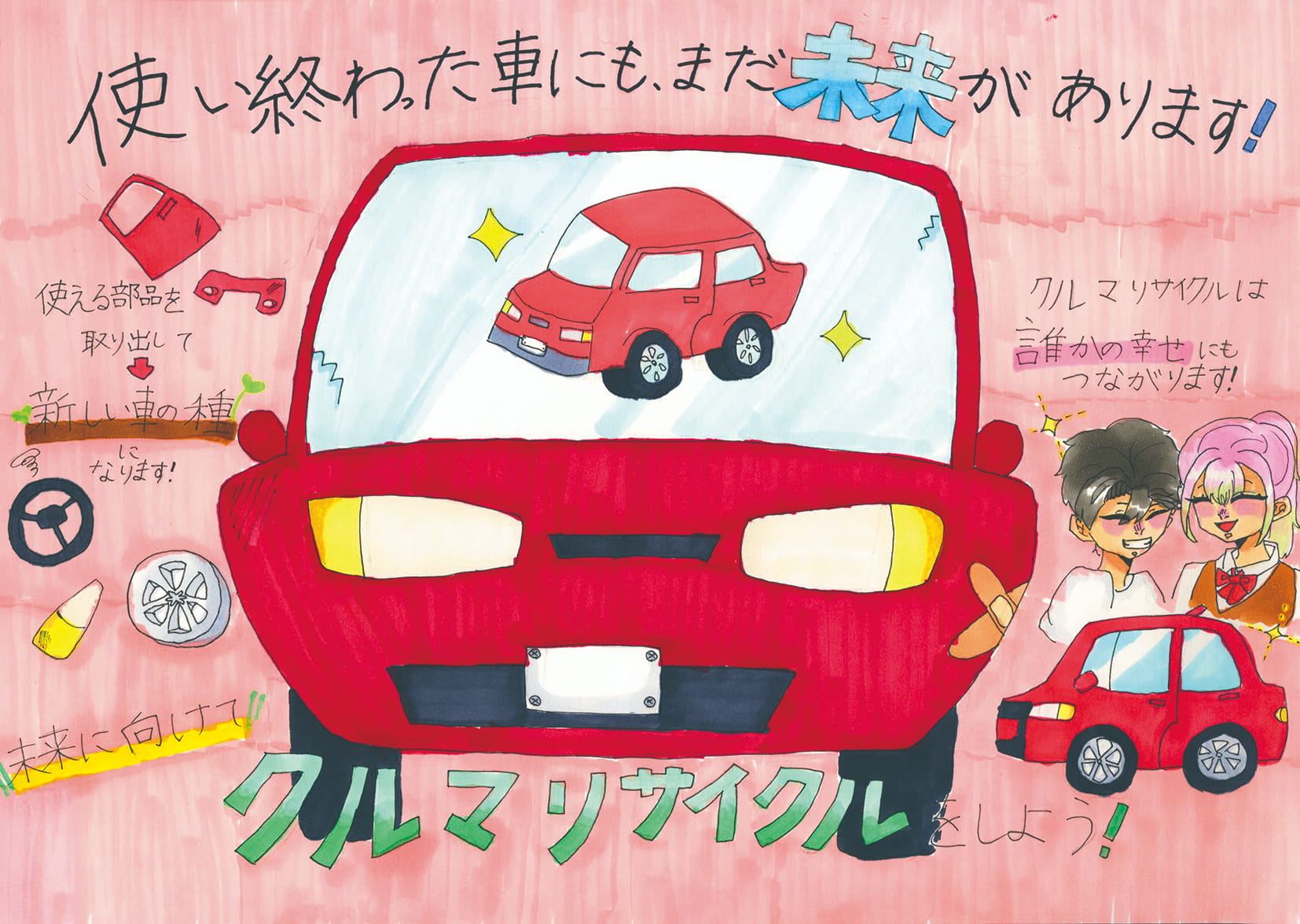 「使い終わった後」は終わりではないことを表現しました。そして「新しい車の種」を表現しました。また、役目を終えた車を「新しい命の始まり」として捉えて描きました。