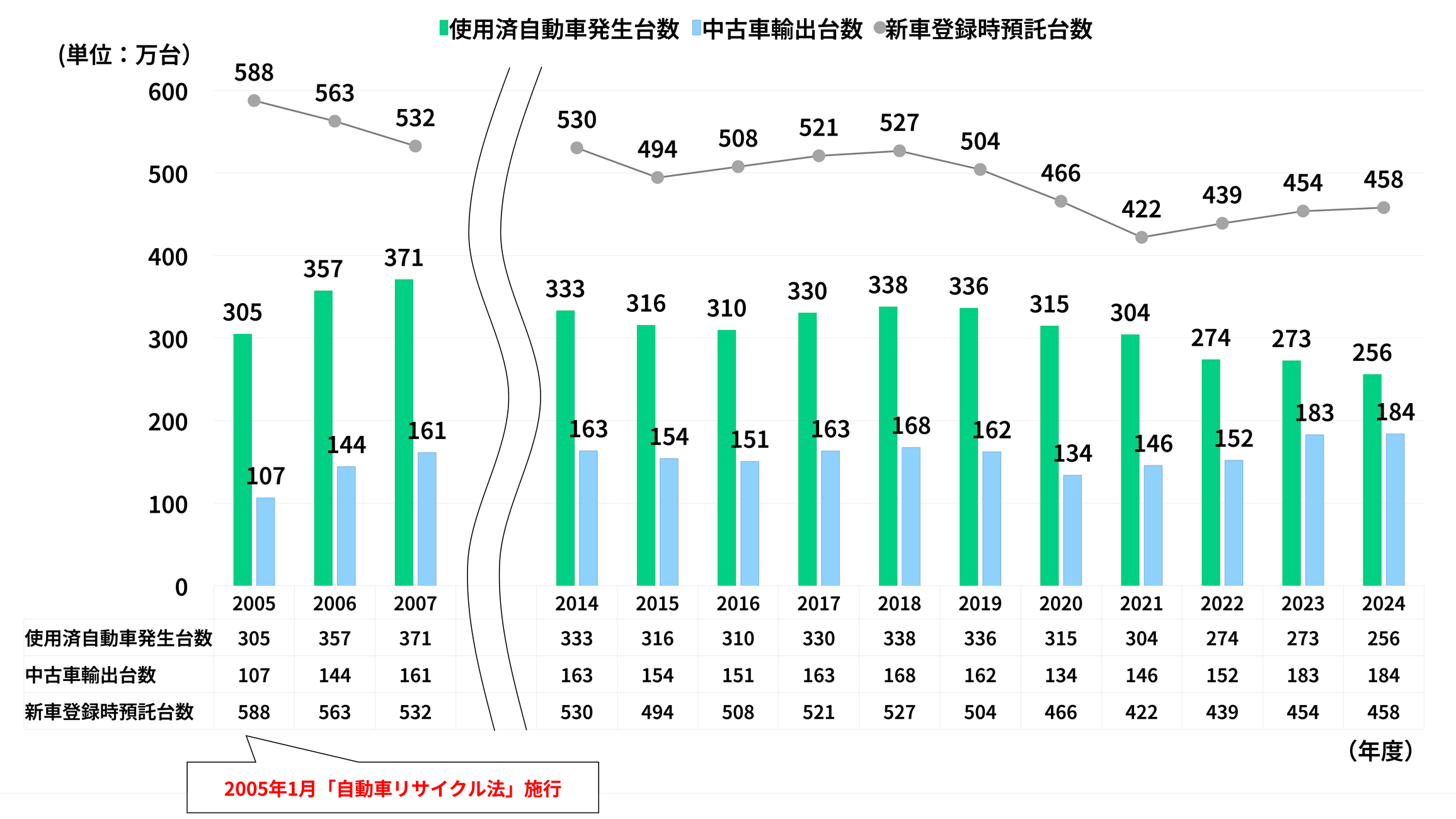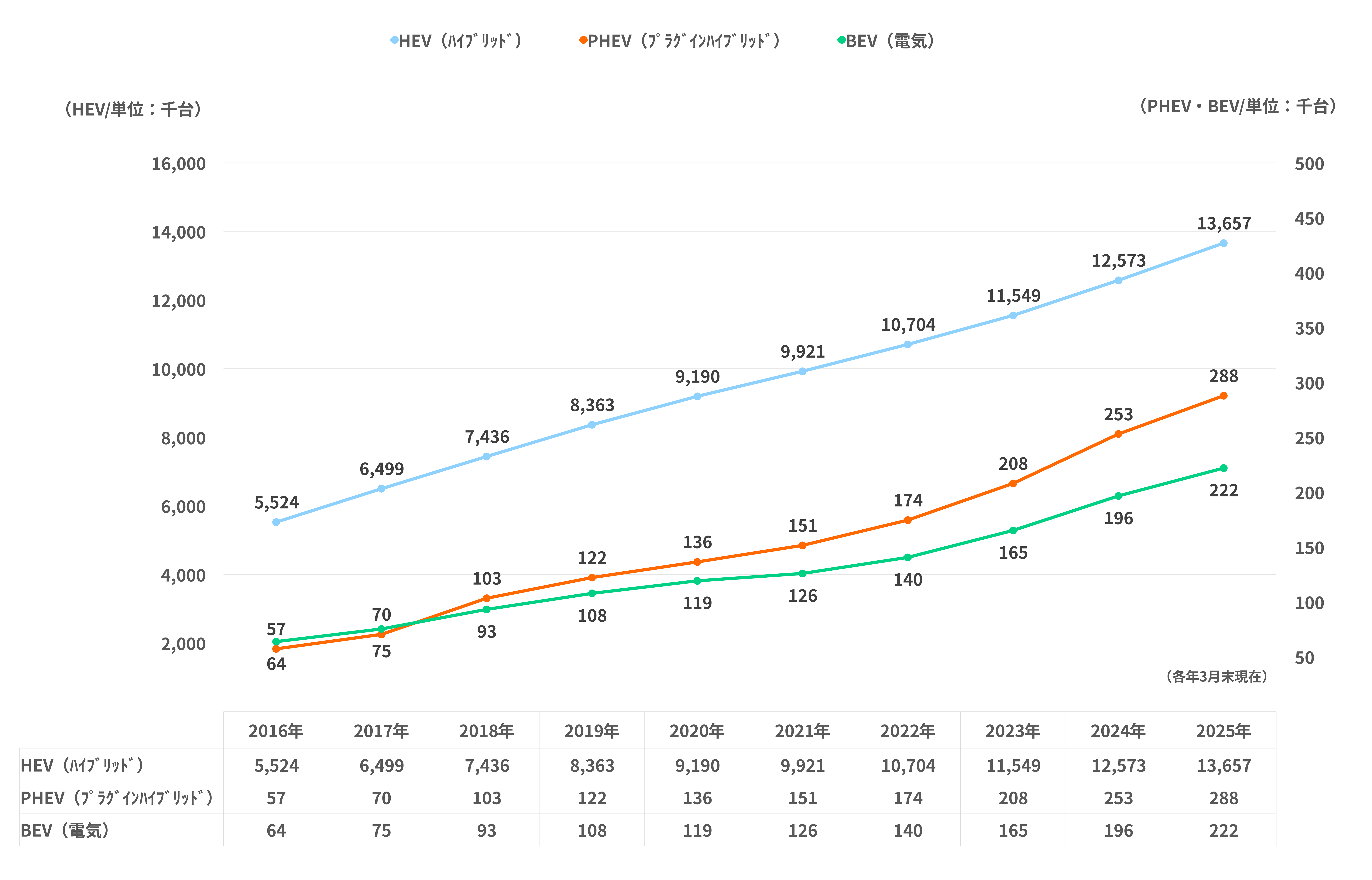(単位:千台、各年3月末現在)